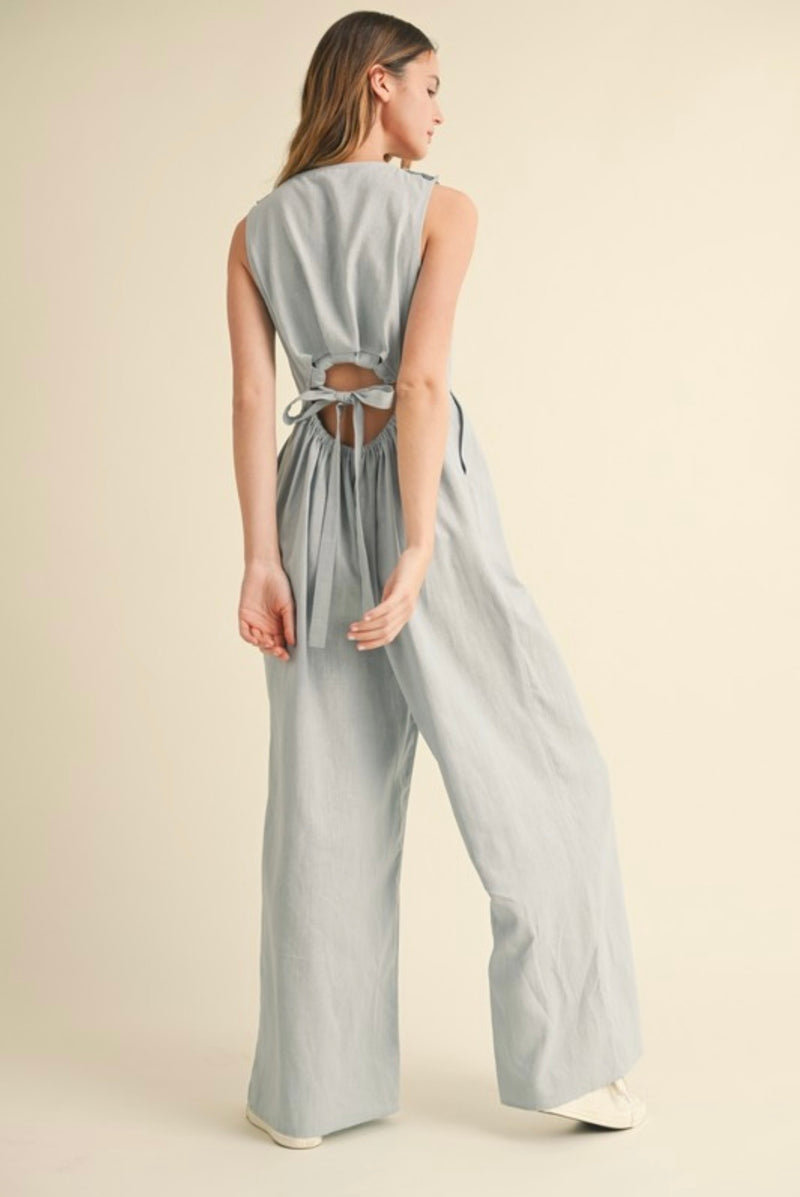 Blue Linen Wide Leg Jumpsuit-TALL